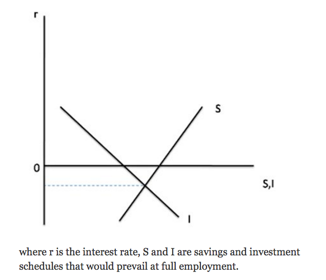 Krugman deutet in diesem Kontext auf das Wicksellian Modell hin: der natürliche Zins nach Wicksell ist der Zinssatz, wo es der Wirtschaft weder aus der Inflation noch aus der Deflation her ein Risiko droht.