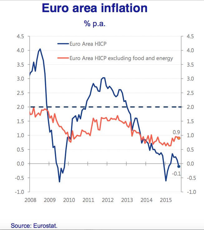 Euro Area Inflation, Graph: Peter Praet, ECB, Oct 8, 2015