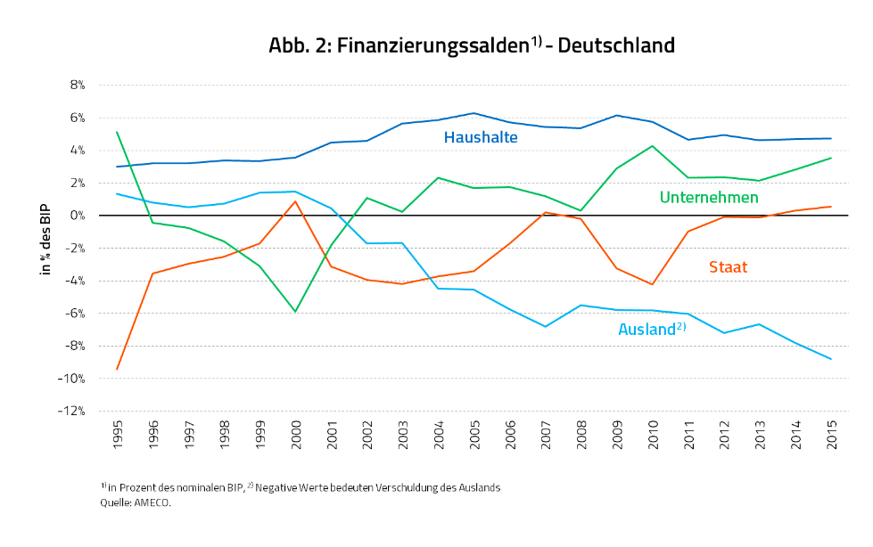 Finanzierungssalden der Wirtschaftssektoren in Deutschland, Graph: Heiner Flassbeck in Makroskop