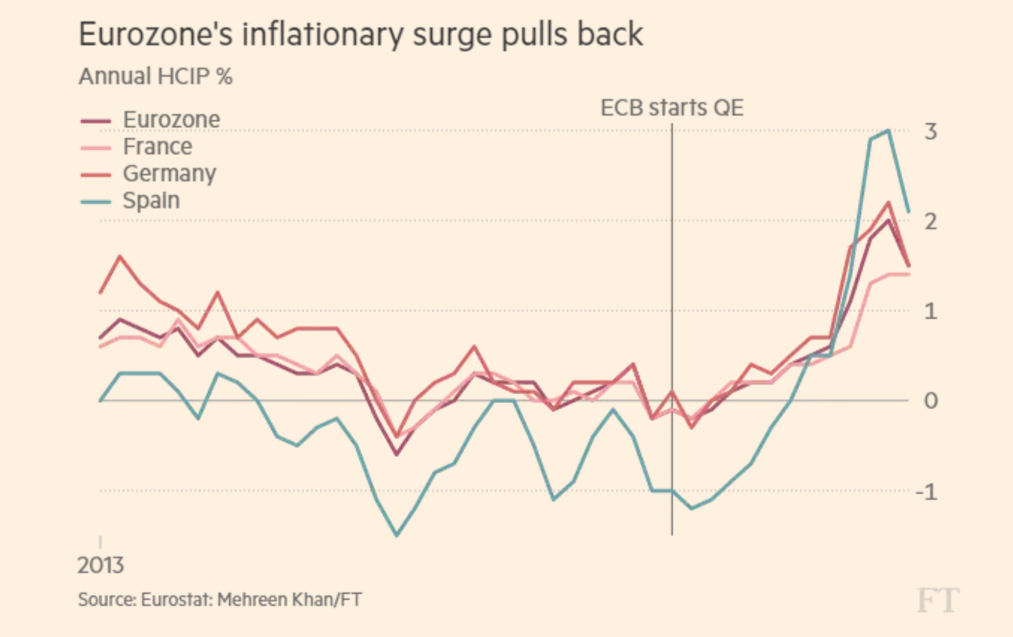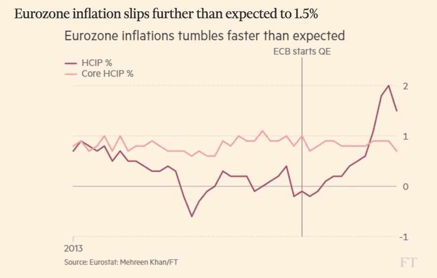 Inflation im Euroraum: der grösste Rückzug seit Dezember 2014, Graph: fastFT