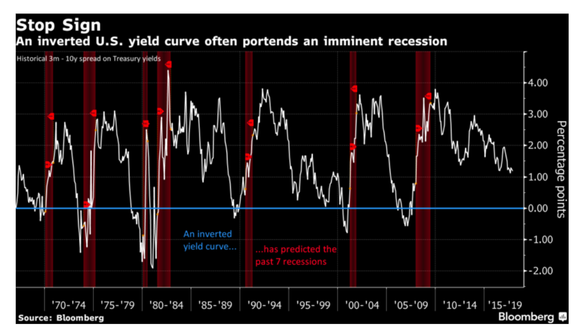 Die inverse US-Zinsstrukturkurve, Graph: Bloomberg