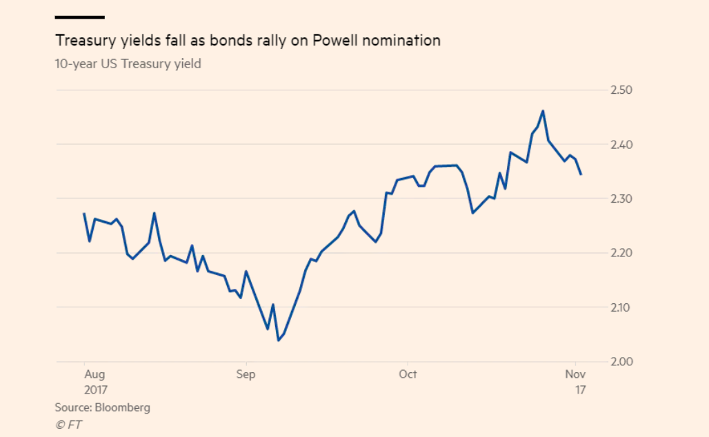 Die flacher werdende Form der Kurve hat sich auch nach der Ernennung von Jerome „Jay“ Powell zum neuen Fed-Präsidenten durch Präsident Donald Trump fortgesetzt.