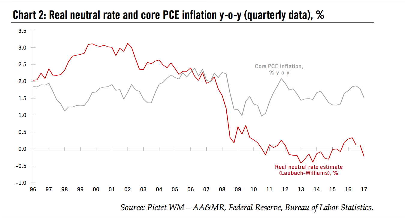 (Gleichgewichtszinssatz) Der sog. (reale) neutrale Zinssatz in den USA, Graph: Pictet WM