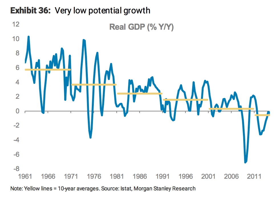 Italien und Wirtschaftswachstum, Graph: Morgan Stanley