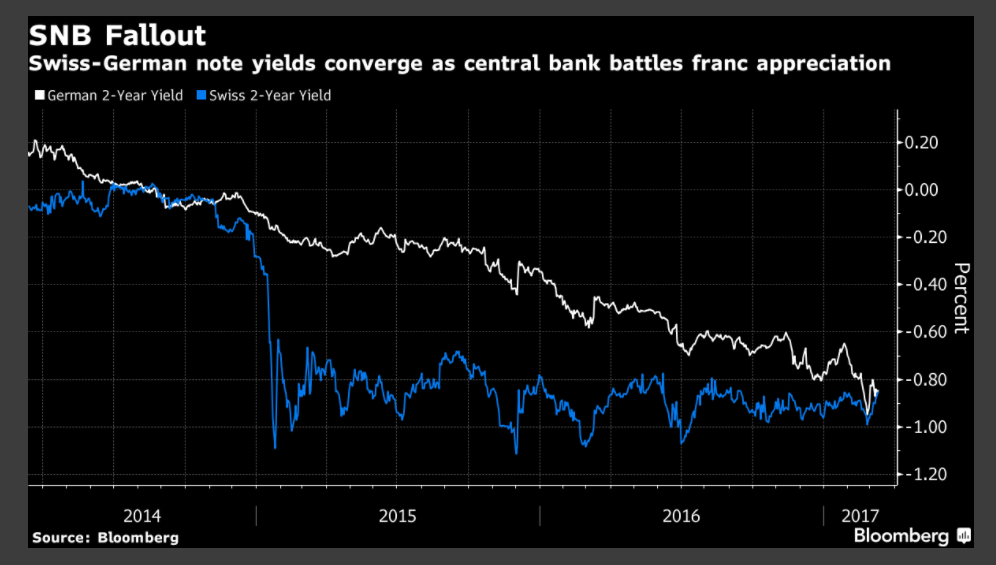 Die SNB hat daher ihren Referenz-Zinssatz in den negativen Bereich gesenkt, um „eine materielle Zinsdifferenz“ zu etablieren, wie Fritz Zurbrügg, Vizepräsident des SNB-Direktoriums im Oktober 2015 unterstrichen hat.