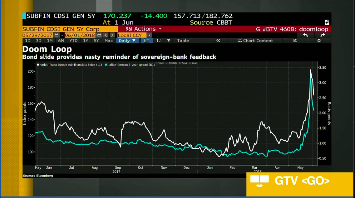 Der Ausverkauf von Bank-Aktien an den Börsen und der rasante Anstieg der Rendite-Differenz (spread) der italienischen Staatspapiere im Verhältnis zu German Bunds, die weltweit als sichere Benchmark-Anleihen gelten, führt erneut vor Augen, dass der Teufelskreis (doom loop) zwischen Staatsanleihen und Bank-Aktien nicht gebrochen ist.