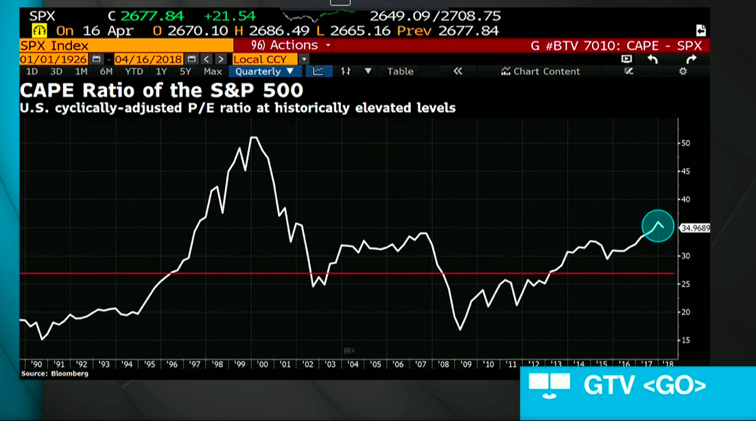 CAPE ratio von S&P 500 Index, Graph: BloombergTV, Apr 17, 2018