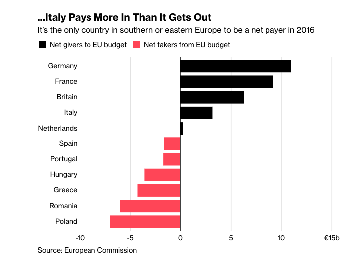 Italien als Netto-Beitragszahler, Graph: Bloomberg, June 6, 2018