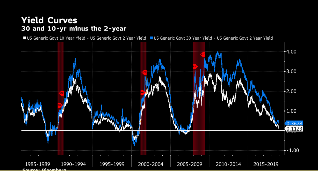 Es ist erstaunlich, dass diese Situation, die Investoren als Vorbote einer Rezession betrachten, wenn sie v.a. den Rendite-Abstand zwischen zwei- und zehnjährigen Anleihen betrifft, zu einem denkbar „günstigen“ Zeitpunkt entstanden ist.