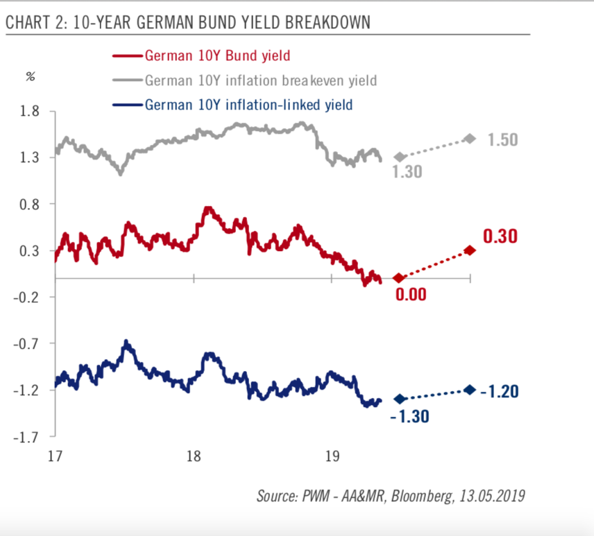 Aufgliederung der deutschen Zinsen mit 10 Jahren Laufzeit, Graph: PictetWM, May 15, 2019
