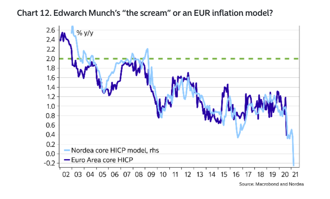 Die Eurozone in einem deflationären Umfeld, Graph: Nordea Research, Sept 25, 2020