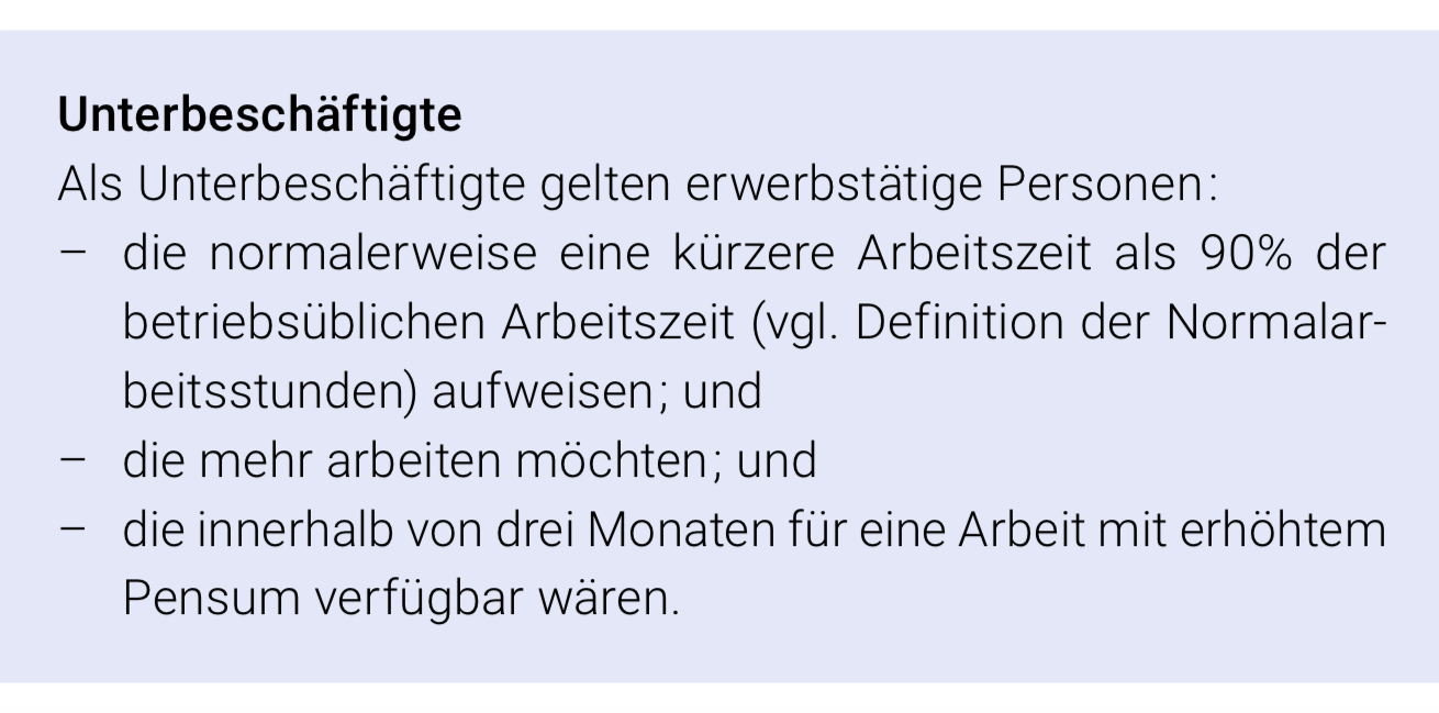 Definition von Unterbeschäftigung, Graph: Bundesamt für Statistik (Schweiz), August 2020.