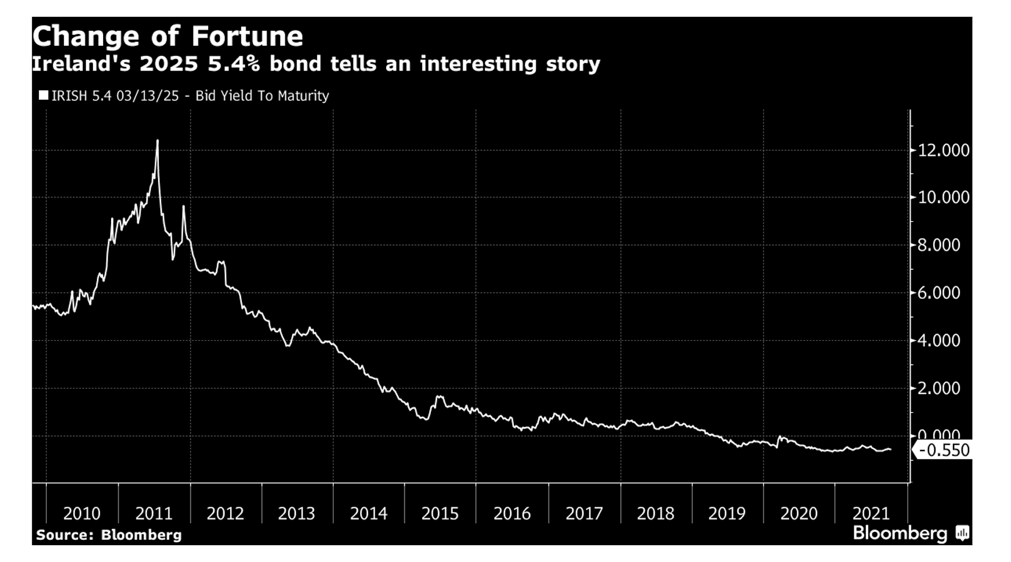 Irlands Staatsanleihe (2025), Graph: Lorcan Roche Kelly, Oct 11, 2021, Bloomberg