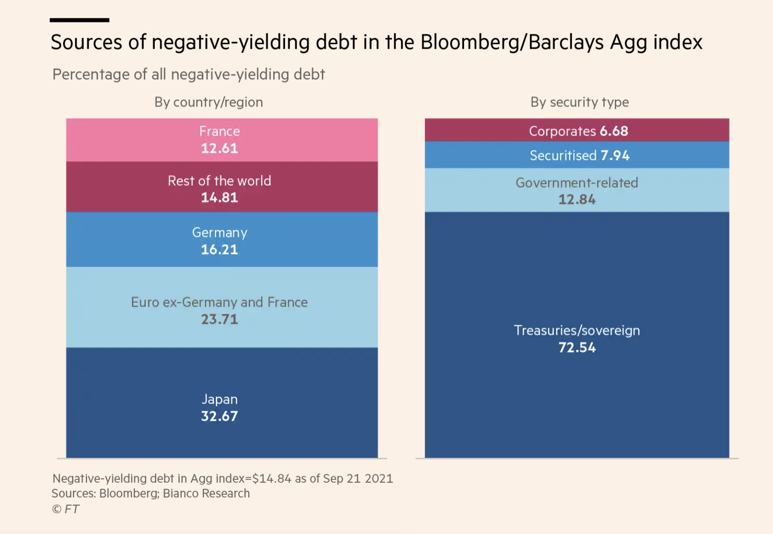 Die Quellen der Anleihen (im Bloomberg-Barclay Aggregate Index), die mit einer Negativ-Rendite gehandelt werden, Graph: FT, Sept 27, 2021.